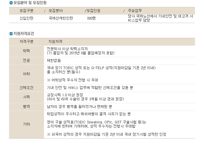 2015 아시아나항공 국제선 캐빈승무원 채용