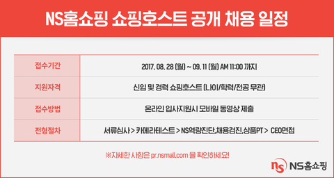 2017 하반기 NS홈쇼핑 쇼핑호스트 공개채용